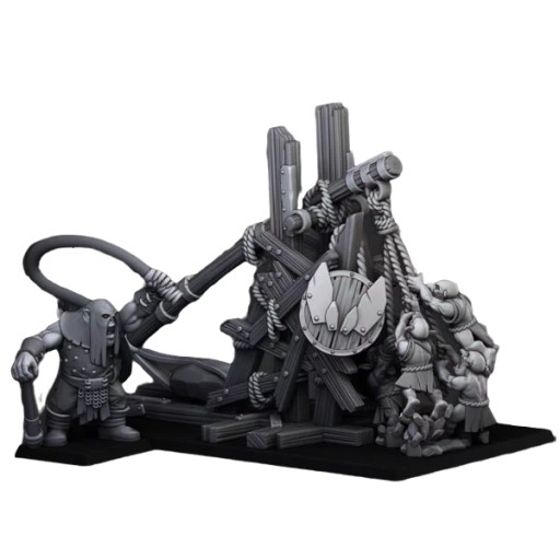Oferujemy zestaw (1 figurka maszyny, 3 gobliny i ork) Orc Catapult autorstwa Highlands Miniatures, wydrukowany na drukarce żywicznej.