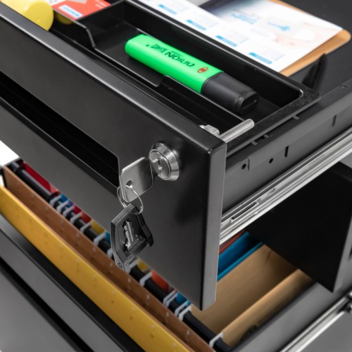 Cała konstrukcja szafki (38 cm x 50 cm x 60 cm) wykonana jest z wysokiej jakości stali o nośności do 120 kg. Wbudowany centralny zamek zabezpiecza zawartość wszystkich 3 szuflad jednocześnie. Twoje cenne dokumenty nie dostaną się w niepowołane ręce.