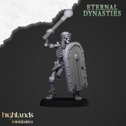 Oferujemy zestaw dziesięciu figurek Ancient Skeletons with Melee Weapons autorstwa Highlands Miniatures, wydrukowany na drukarce żywicznej.