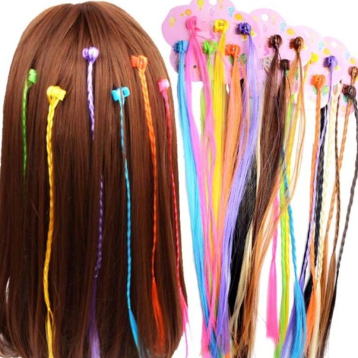 Włosy/warkoczyki montuje się wpinając pomiędzy naturalnymi pasmami włosów lub bezpośrednio na włosy.