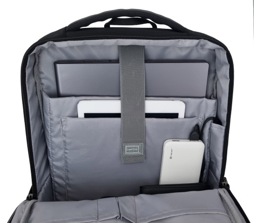 Główna komora plecaka jest pojemna, znajduje się tutaj kieszeń na laptopa w rozmiarze do 15,6" oraz oraz kieszeń na tablet w rozmiarze do 10".