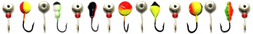 SIEDEM MORMYSZEK W RÓŻNYM KSZTAŁCIE I KOLORZE - WYBÓR LOSOWY - MOCOWANIE BOCZNE.