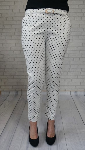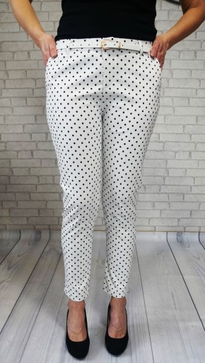 SPODNIE CYGARETKI FREESIA ELEGANCKIE Z PASKIEM GROSZKI 7/8
