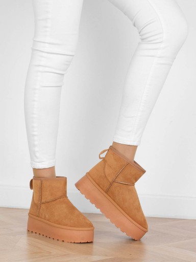 Cholewka śniegowców została wykonana z miękkiego zamszu, co nadaje im elegancki wygląd i jednocześnie zapewnia trwałość i odporność na wilgoć. Wewnętrzna część buta jest ocieplona mięciutkim i ciepłym futerkiem, które chroni stopy przed zimnem i zapewnia przyjemne uczucie ciepła.