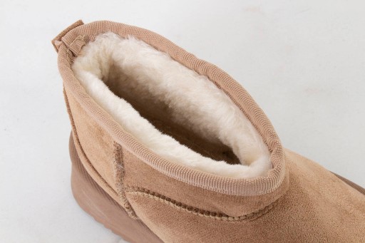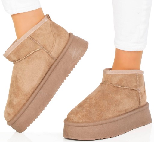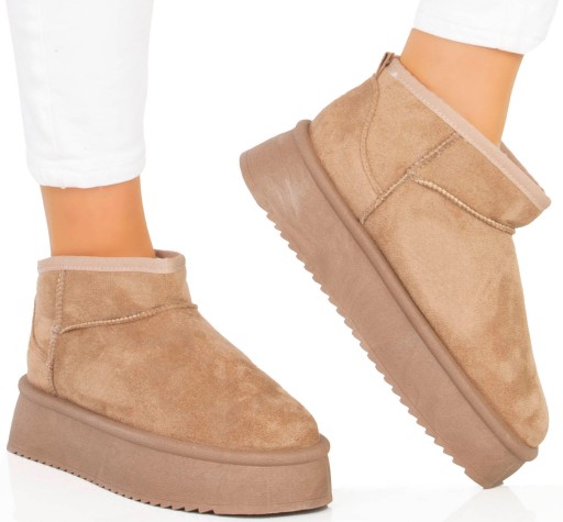 Cholewka śniegowców została wykonana z zamszu, który oprócz eleganckiego wyglądu charakteryzuje się wysoką trwałością. Wewnętrzna część buta została ocieplona ciepłym futerkiem, które doskonale chroni przed niskimi temperaturami i utrzymuje stopę w przyjemnym cieple. Futerko jest miękkie i przyjemne w dotyku, zapewniając wygodę podczas noszenia.