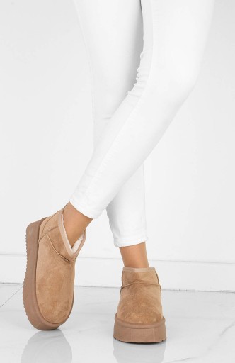 7901 BEŻOWE OCIEPLANE BOTKI NA GRUBEJ PODESZWIE ŚNIEGOWCE NA PLATFORMIE 39