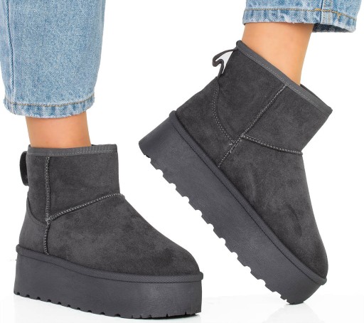 Cholewka śniegowców została wykonana z miękkiego zamszu, co nadaje im elegancki wygląd i jednocześnie zapewnia trwałość i odporność na wilgoć. Wewnętrzna część buta jest ocieplona mięciutkim i ciepłym futerkiem, które chroni stopy przed zimnem i zapewnia przyjemne uczucie ciepła.