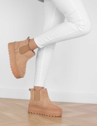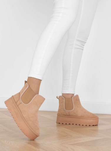 7910 BEŻOWE OCIEPLANE BOTKI NA GRUBEJ PODESZWIE ŚNIEGOWCE NA PLATFORMIE 39