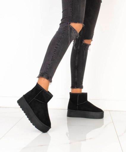 Cholewka śniegowców została wykonana z miękkiego zamszu, co nadaje im elegancki wygląd i jednocześnie zapewnia trwałość i odporność na wilgoć. Wewnętrzna część buta jest ocieplona mięciutkim i ciepłym futerkiem, które chroni stopy przed zimnem i zapewnia przyjemne uczucie ciepła.