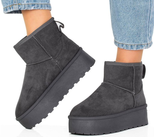 Cholewka śniegowców została wykonana z miękkiego zamszu, co nadaje im elegancki wygląd i jednocześnie zapewnia trwałość i odporność na wilgoć. Wewnętrzna część buta jest ocieplona mięciutkim i ciepłym futerkiem, które chroni stopy przed zimnem i zapewnia przyjemne uczucie ciepła.