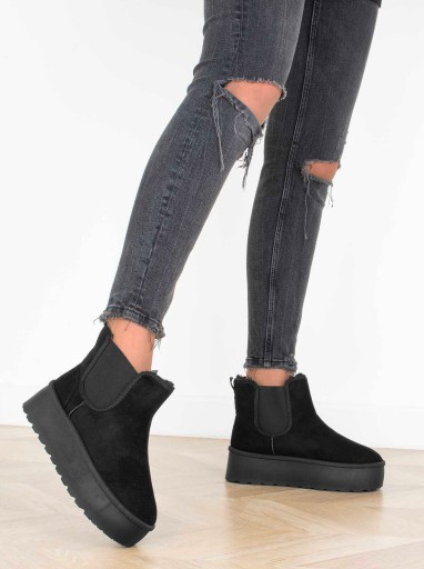 7911 CZARNE OCIEPLANE BOTKI NA GRUBEJ PODESZWIE ŚNIEGOWCE NA PLATFORMIE 40
