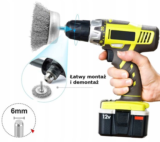 ✅ ZESTAW DRUCIANYCH SZCZOTEK DO WIERTARKI Z TRZPIENIEM INOX 6 sztuk VERKE