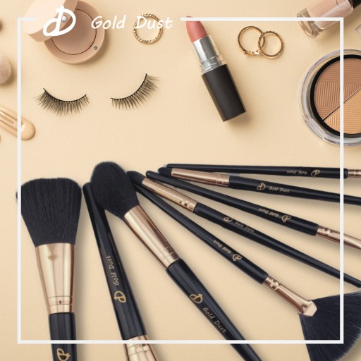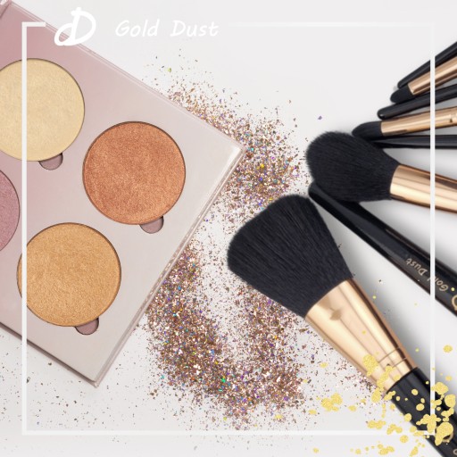 Szukasz zestawu pędzli do makijażu, który spełni wszystkie Twoje potrzeby? Zestaw pędzelków GOLD DUST to idealne rozwiązanie dla każdego miłośnika makijażu! Eleganckie połączenie czarnego trzonka z subtelną skuwką w kolorze różowego złota umili Waszą makijażową rutynę, a czarna stylowa tuba z zatrzaskami świetnie sprawdzi się na domowej toaletce jak i w podróży!