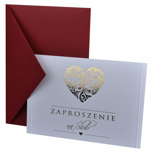 - Zaproszenie wykonane techniką Hot-stampingu druku i tłoczenia z użyciem folii złotych i matryc wypukłych