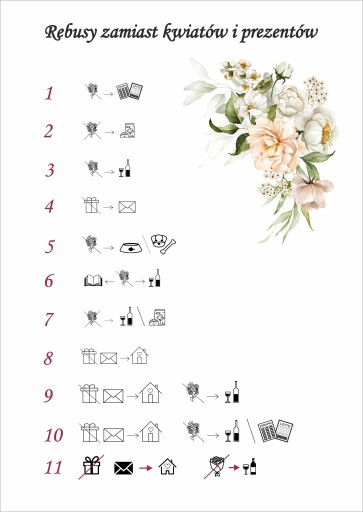 - W cenie zaproszenia wydrukowane jest w którym kościółku, gdzie przyjęcie, cytat oraz grafiki do wyboru co zamiast kwiatów lub prezentów, lub możesz przesłać nam własne propozycje.