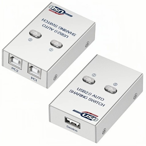 Automatyczny przełącznik USB 2x1umożliwia proste i wygodne współdzielenie jednego urządzenia peryferyjnego USB pomiędzy dwa komputery.