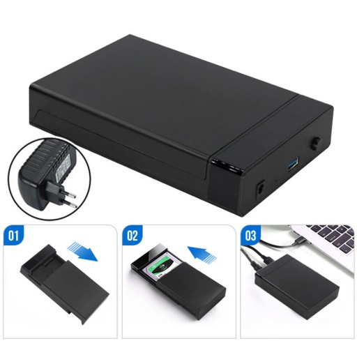 ✅ METALOWE PUDEŁKO NA PRZENOŚNY DYSK TWARDY 2.5/3,5 CALA PUDEŁKO NA DYSK TWARDY 3.0 DO KOMPUTERÓW STACJONARNYCH (Z EUROPEJSKIM PRZEWODEM ZASILAJĄCYM KABLEM USB DO TRANSMISJI DANYCH) - CZARNE