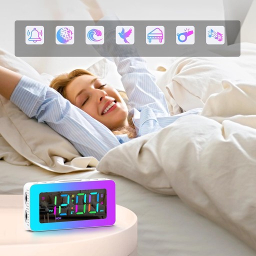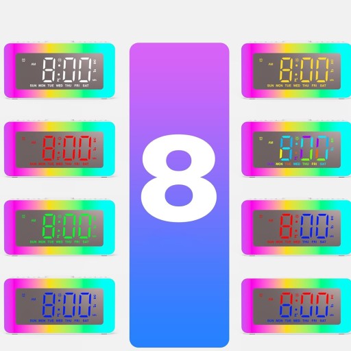 - Przekraczający wszelkie oczekiwania wobec zegara stołowego - elektroniczny budzik ma 8 dynamicznych, kolorowych trybów światła zmieniających kolor, które zapewniają wesołą atmosferę.