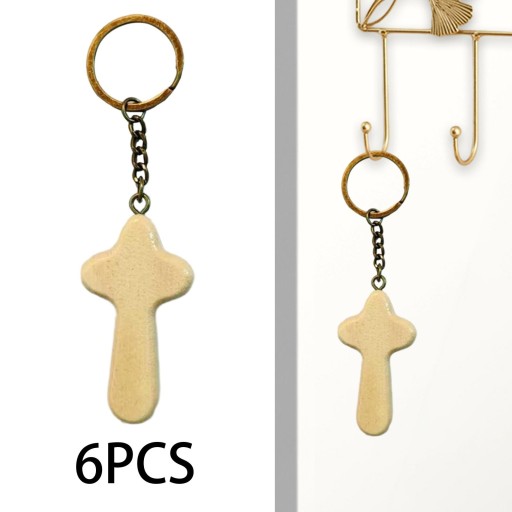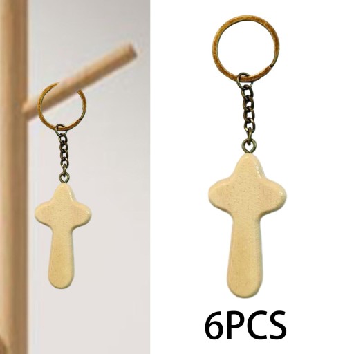6 szt. Brelok z drewnianym krzyżem Brelok do kluczy na urodziny, boże narodzenie, rocznica, beżowy