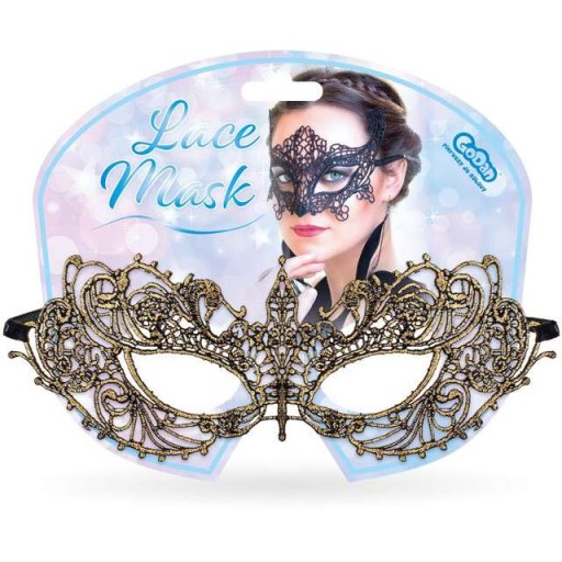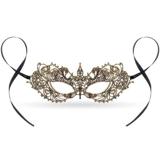 Wspaniała, stylowa i elegancka ażurowa maska w kolorze złotym. Wykonana z nici, wizualnie wygląda jak by była szydełkowana. Mocowana na tasiemkę zawiązywaną z tyłu głowy.