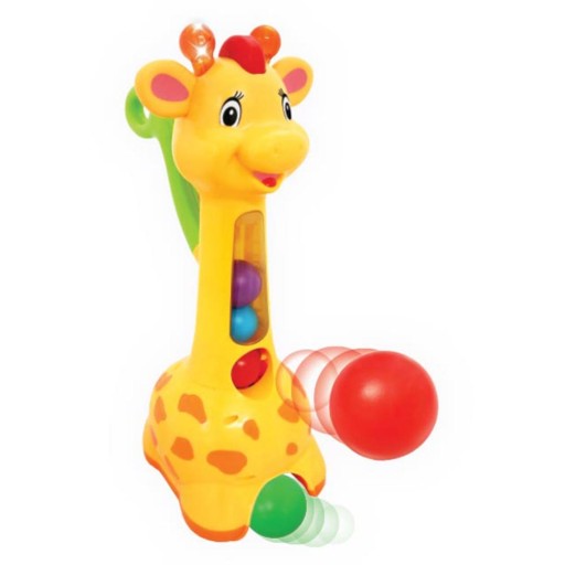Po każdym naciśnięciu na grzywę żyrafy, zabawka wyrzuci jedną z 4 kolorowych piłeczek.