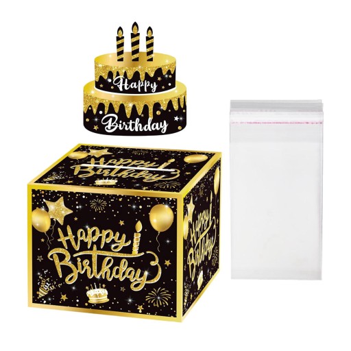 [Wymiary]: Urodzinowa kasetka na pieniądze ma wymiary 13 cm x 13 cm x 11 cm, rozmiar torby to 20 cm x 8 cm, a rozmiar karty to 9,3 cm x 10,2 cm, idealnie nadaje się na każde przyjęcie urodzinowe.