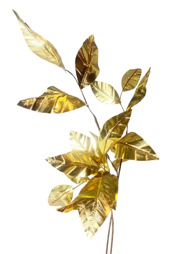 Przedmiotem sprzedaży jest gałązka liści w kolorze złotym. Liście idealnie się nadają jako dodatek do kompozycji kwiatowych jak i dekoracja wazonu.