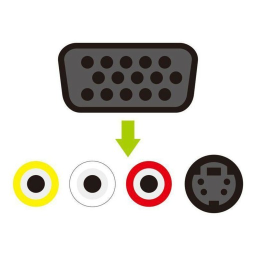 -Złącze VGA na jednym końcu i oba złącza RCA wyjścia wideo (TV) i wyjścia S-Video na drugim końcu.