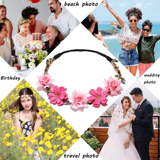 🌹【Łatwa do noszenia】 Nasza opaska na czoło składa się z rozciągliwej gumki, która pasuje do większości głów kobiet i dzieci i jest przyjemna w noszeniu, z 5 kwiatami wokół opaski na czoło, bardzo świeża i czarująca.