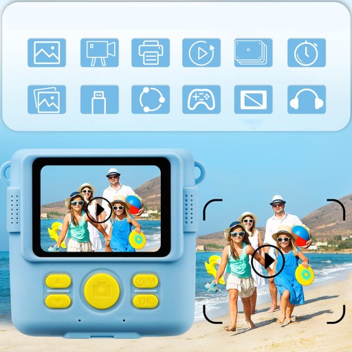 - Może zaspokoić różne potrzeby dzieci dzięki dużemu ekranowi o przekątnej 2,4 cala, wideo 1080P, 16-krotnemu zoomowi cyfrowemu, lampie błyskowej, fotografii poklatkowej, fotografowaniu ciągłym, grach, ramkom filtrów i plikom mp3.