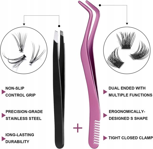 Zestaw Pro: Pro-aplikator do rzęs do rzęs klastrowych wykonany jest z wysokiej jakości stali nierdzewnej wykorzystującej do samodzielnego wykonania pojedynczych rzęs, rzęs klastrowych i mocujących brwi.