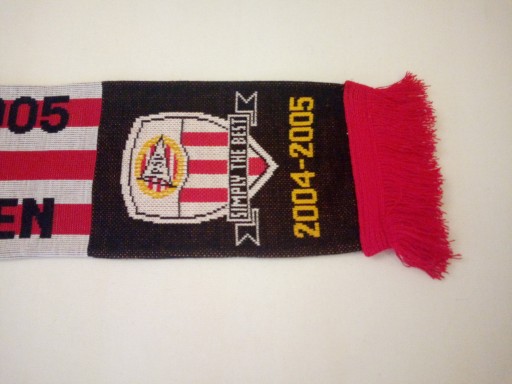 Wzór nr-1-PSV-szal dziany,dwustronny, na końcach czerwone frędzle.