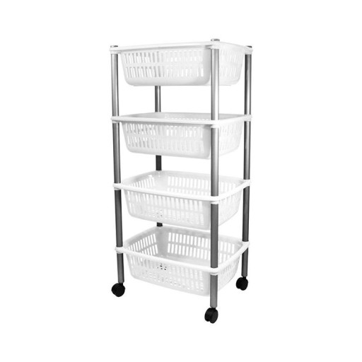Solidny , wytrzymały stabilny regał, stojak do łazienki 4 koszyki na kółkach