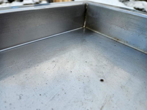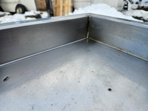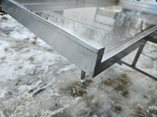 mamy do sprzedania widoczny na zdjęciach gastronomiczny blat rogowy ze zlewem. Blat jest wykonany z bardzo grubej stali, dzięki czemu jest bardzo stabilny oraz odporny na ciężkie warunki pracy (jak to bywa w gastronomii).
