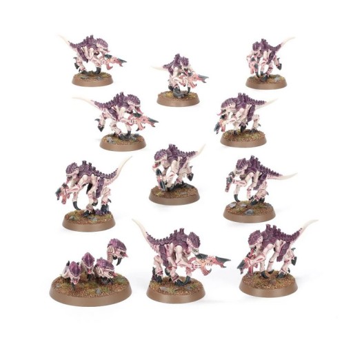 - 10x Termagants: Scuttling hordes of simple Tyranid creatures, armed with weapons that project living ammunition