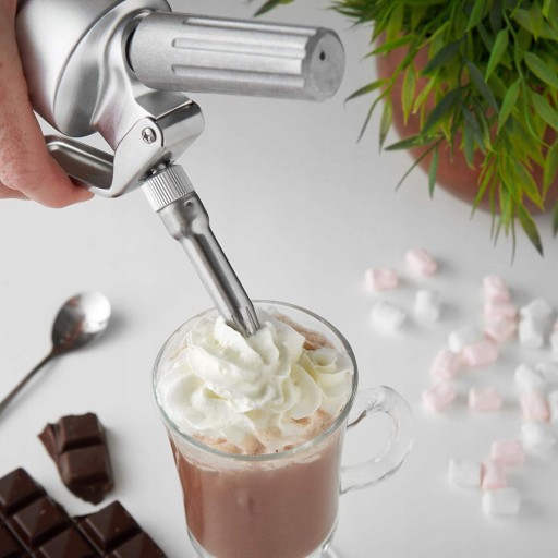 🎂 Ciepłe i zimne: aluminiowa głowica i obudowa oraz końcówki ze stali nierdzewnej sprawiają, że syfon nadaje się zarówno do przygotowywania zimnych jak i gorących kremów.