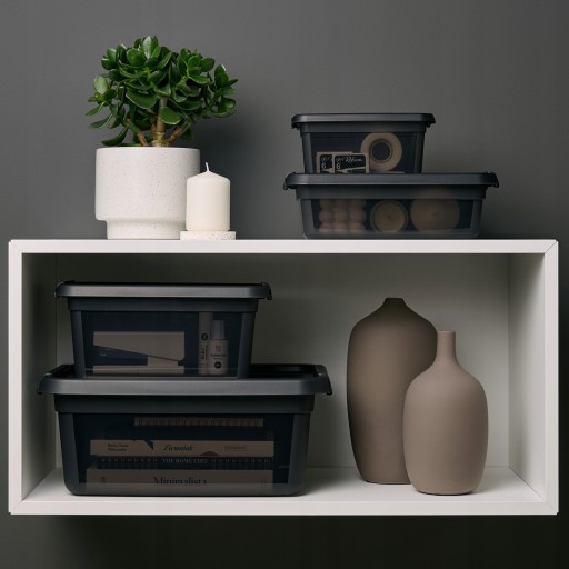 - płaska pokrywa i klipsy zapewniają bezpieczne zamknięcie i chronią przechowywane przedmioty przed kurzem i wilgocią.