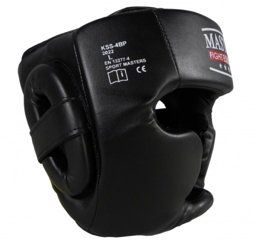 Kask sparingowy KSS-4BP wykonany ze skóry syntetycznej. W pełni zabudowany z ochroną kości policzkowych, brody i górnej cześci głowy.