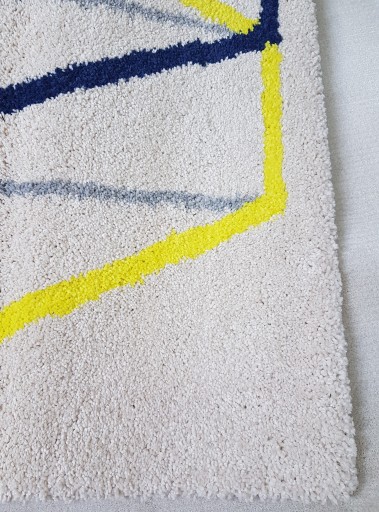 СОВРЕМЕННЫЙ ПУШИСТЫЙ ЖИВОЙ КОВЕР КРЕМОВЫЙ ШЭГГИ С ЦВЕТНЫМИ ЛИНИЯМИ 140х200