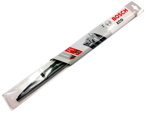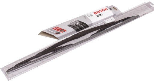 Konstrukcja wycieraczki Bosh Eco to w pełni metalowe, lakierowane ramię wzmocnione nitami. Dzięki temu jest ono wyjątkowo trwałe i odporne na wpływ niekorzystnych warunków atmosferycznych. Duże otwory umieszczone w środkowej części ramienia zapewniają łatwiejszy przepływ powietrza, dzięki czemu wycieraczki nie odrywają się od szyby w trakcie jazdy z dużą prędkością. Pióro wycieraczki zbudowane jest z wysokiej jakości gumy pokrytej warstwą grafitu, dzięki czemu precyzyjnie oczyszcza szybę z wody i zanieczyszczeń. Program wycieraczek Bosch Eco został stworzony z myślą o klientach, którzy chcą w łatwy i szybki sposób dobrać właściwe wycieraczki do swojego samochodu. Program obejmuje jedynie 6 długości (400 mm, 450 mm, 475 mm, 500 mm, 530 mm, 550 mm). Wystarczy, więc wybrać odpowiednią długość wycieraczki, aby skompletować pełen zestaw. To szczególnie atrakcyjna oferta dla klientów, którzy szukają wycieraczek w korzystnej cenie, ale nie chcą jednocześnie rezygnować z ich jakości. Wycieraczki Bosch Eco posiadają adapter Quick-Clip. Dzięki jego zastosowaniu montaż wycieraczek jest szybki i łatwy.  , Wycieraczki zapewniają odpowiednią widoczność podczas jazdy w każdych warunkach atmosferycznych. Ich zadaniem jest efektywne i bezgłośne usuwanie zanieczyszczeń z szyby pojazdu. Występują również w wersji pomniejszonej i montowane są na szkłach świateł drogowych i mijania samochodu. Wycieraczka zbudowana jest z ramienia oraz połączonego z nim pióra, będącego cienkim paskiem gumy rozciągniętym na metalowym lub plastikowym uchwycie. Ramię wycieraczki dociska pióro do szyby pojazdu i wprawia je w ruch. Zniszczone pióra wycieraczek powodują pogorszenie widoczności w trudnych warunkach pogodowych, co wpływa na bezpieczeństwo jazdy, mogą też powodować mikrouszkodzenia na szybie. Pióra dość szybko ulegają zużyciu i należy je regularnie wymieniać. Dostępne są trzy rodzaje wycieraczek, przegubowe, inaczej klasyczne i bezprzegubowe, zwane płaskimi oraz hybrydowe.