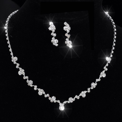 Naszyjnik i kolczyki są platerowane białym złotem i wysadzane cyrkoniami najwyższej jakości AAA+
