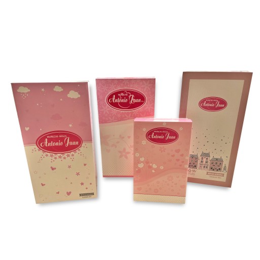 Mia zapakowana jest w różowe, oryginalne pudełko Antonio Juan. Z takim kartonem nie musisz martwić się o opakowanie na prezent, gdyż pudełko samo w sobie wygląda wyjątkowo. Kartonik wyśmienicie nadaje się również jako łóżeczko dla bobasa, co zachęci do zabawy w troskliwą mamę przez wiele godzin. W tym czasie nasz urwis uczy się odpowiedzialności, opieki oraz troski o innych.