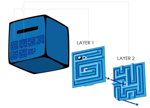 Inside 3 to trójwymiarowa łamigłówka, w której po wrzuceniu do środka kostki małej kulki, musimy wydostać ją z drugiej strony labiryntu.