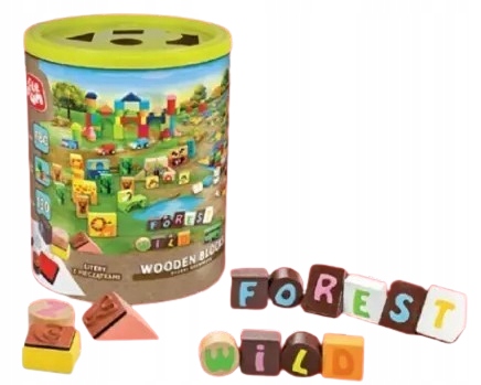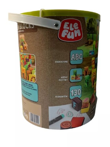 ELEFUN Edukacyjne klocki drewniane w tubie LITERY Z PIECZĄTKAMI 130 el.
