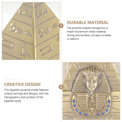 Wystrój posągu piramidy ma odpowiednią pojemność, dzięki czemu można go używać jako szkatułki na biżuterię lub schowek na różne drobiazgi.