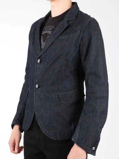 Sportowa marynarka dla mężczyzn. Klasyczny fason. Na przodzie marynarki 2 dolne kieszenie i jedna wyżej. Ozdobę stanowią czarne metalowe guziki z nazwą firmy Lee oraz rękawy ciekawie przycięte na końcach.Materiał: 100% bawełna