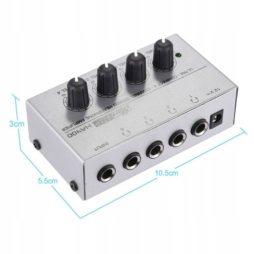 Z 4-kanałami wyjściowymi słuchawek i 1-kanałem wejściowym.