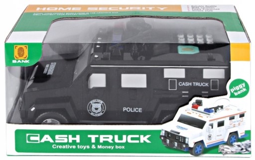 - Po umieszczeniu gotówki w skarbonce samochód zaczyna migać światełkami i grać