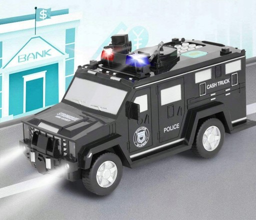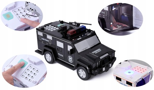 Wielofunkcyjny samochód skarbonka otwierana na szyfr - efekty świetlne i muzyczne - kolor czarny