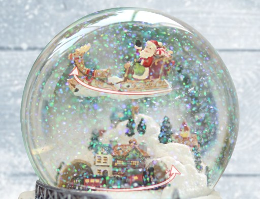 - Potrząsanie kulą tworzy wspaniały efekt śniegu, doskonale podkreślany przez pokaz świateł LED w podstawie.